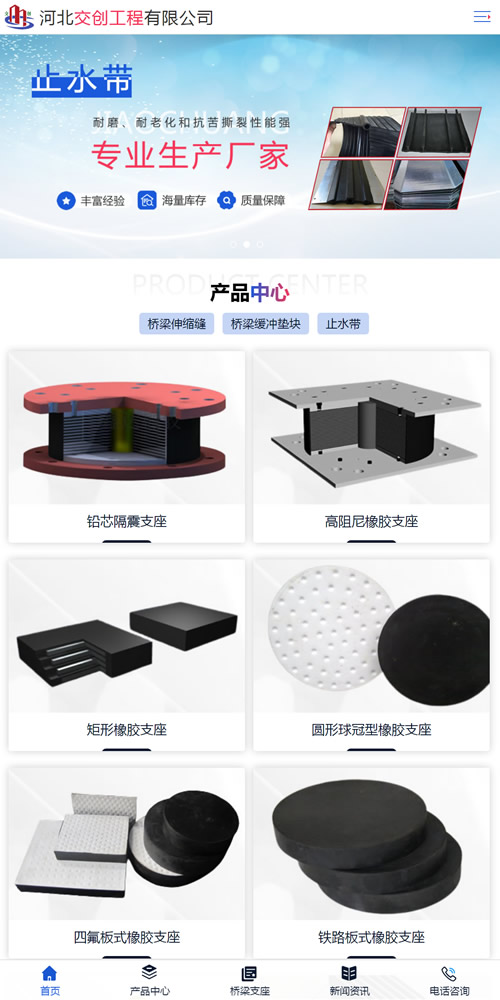 公司主营:桥梁伸缩缝、桥梁缓冲垫块、橡胶挡块、止水带、声测管、预应力波纹管等,我们可针对不同工程技术要求,在建设标准设计图集的基础上研发迎合广大用户需求的工程,工程设计人员可根据项目设计的要求选用相应型号和规格的产品,也可根据建筑的实际需要特别设计制造,以保持证建筑的整体美观,多次受到用户的好评。